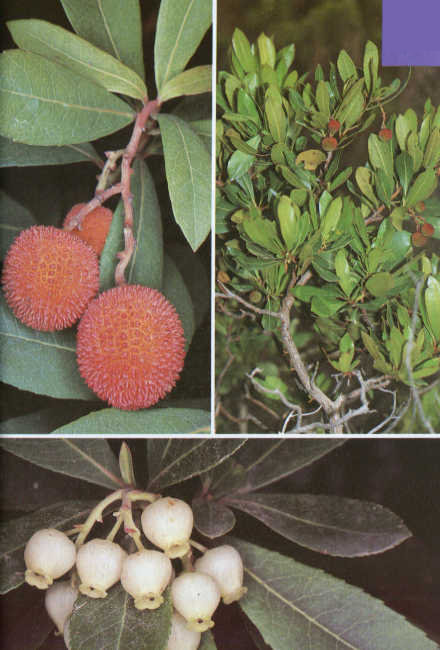 Distribution : L'arbousier commun est répandu dans la région méditerranéenne, dans les taillis secs et les maquis, et il remonte le long de la côte atlantique, et va jusqu'en Irlande, où on le rencontre fréquemment, planté comme arbuste décoratif dans les parcs et les jardins.